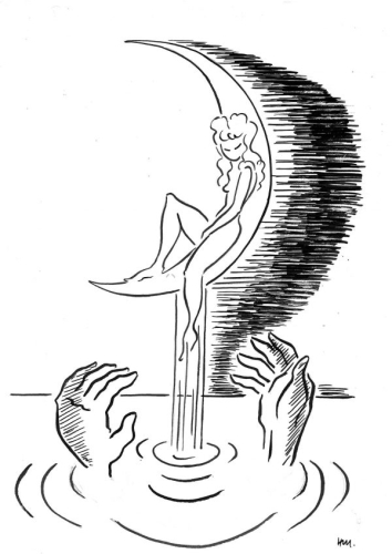 Illustration til “Die Mondfrau und der Wassermann” fra en tysk novellesamling udgivet af Barbara Frischmuth, Salzburg 1991.